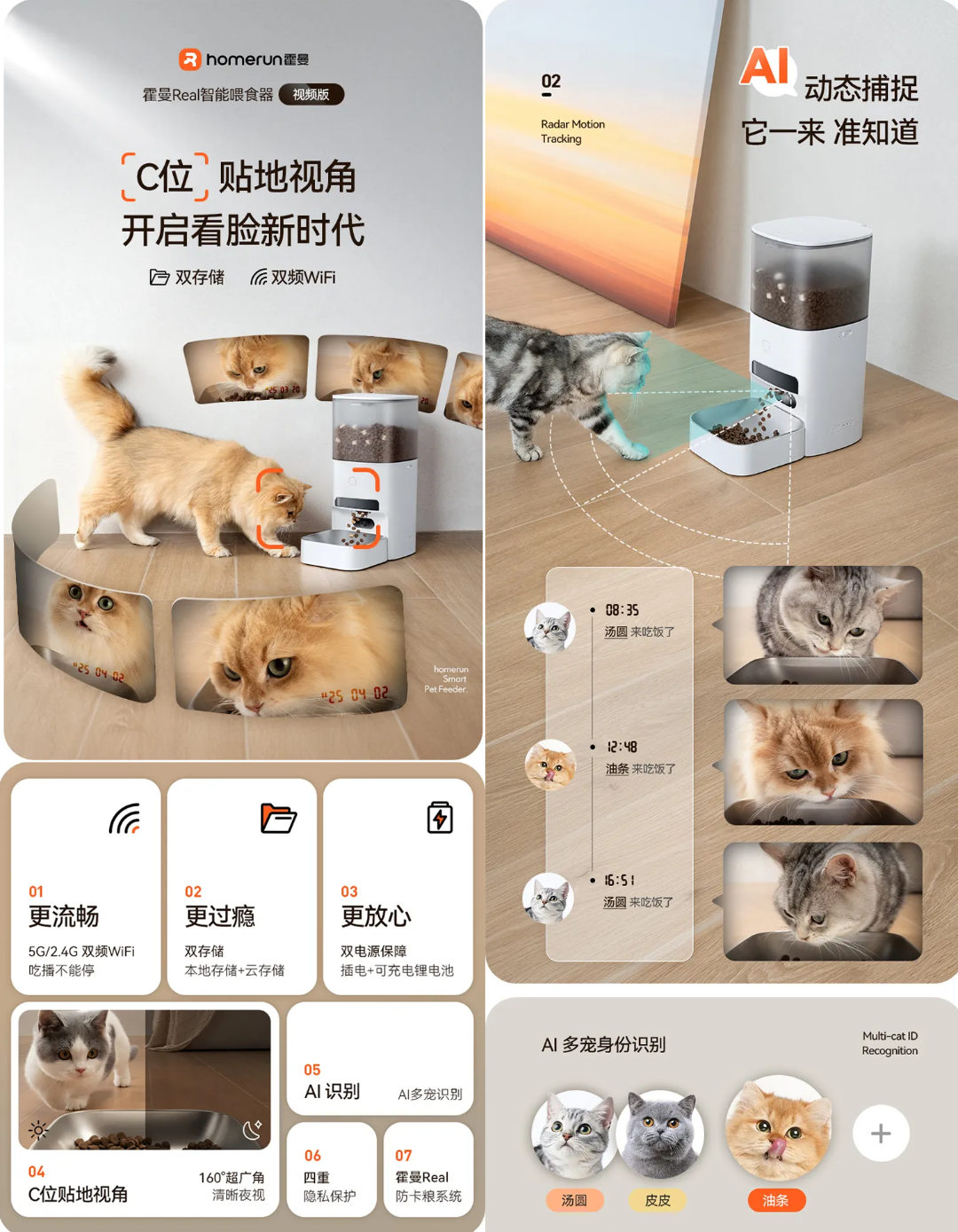与传统智能设备相比,AI赋能的霍曼real喂食器实现了三大突破: