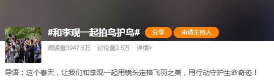 一组鸟类摄影作品能引发多大的连锁反应?演员李现给出了超出想象的答案。今年四月,李现在社交平台分享的“打鸟”照片不仅获得百万级互动,更获得生态环境部官方点赞。全国多地文旅部门纷纷加入这场狂欢,隔空邀请李现前往当地观鸟。